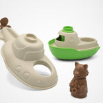 Le sous-marin qui se transforme en bateau pour explorer le fond du bain, accompagné de sa figurine de renard.